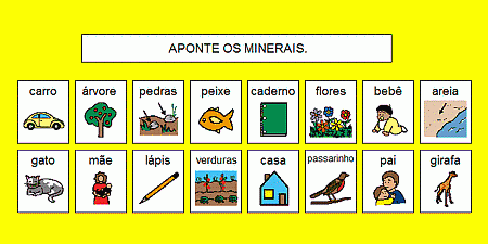 Três atividades foram construídas para que o usuário da CA possa responder questões apontando os símbolos gráficos PCS. A primeira pede para apontar os animais; a segunda para apontar os vegetais e a terceira para apontar os minerais.